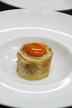 そして、パスタはこの不思議なかたちをしたカルボナーラ。