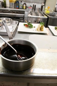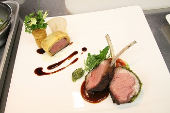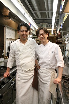 仔羊の料理の手元撮影を終えた、平形先生と卒業生の神保さん。