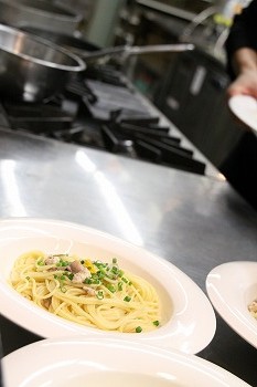 出来上がったパスタは、次々とセットの中へ運ばれていきます。