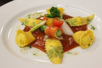 今回は、女性らしいお花畑のラヴィオリ「ラヴィオリ・カンポ・ディ・フィオーリ」の料理に象徴されるように