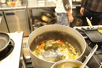 さて、それがこの鍋。この大きな鍋に入っているのは「ブロード」とよばれるスープ。