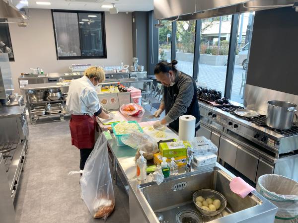 食事以外の時間、辻調の先生たちは撮影の準備をしていますが、