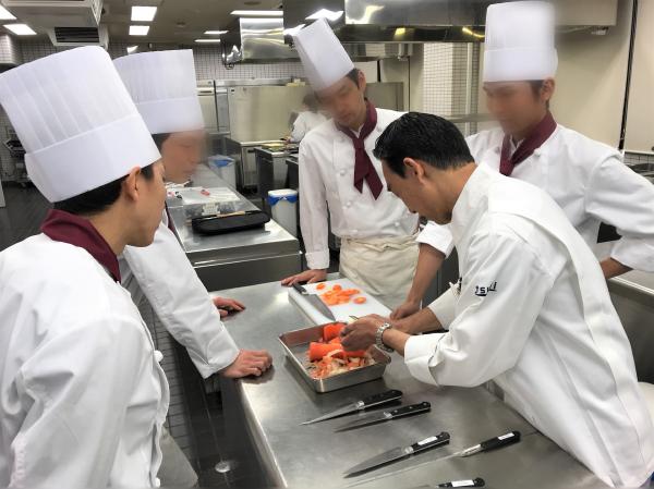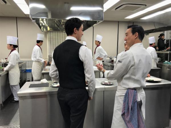 現代の厨房シーンでは、エコール 辻 東京の実習室で撮影が行われました。