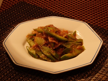 青々としていて味も濃厚なこのセロリの食感を活かす切り方と香りを生かす炒め方がポイントでした。