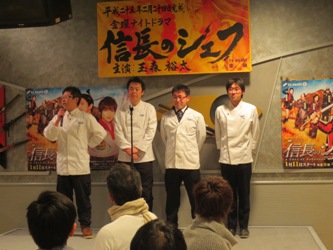 先生方も演壇に上がり、一人ずつ「信長のシェフ」収録の思い出やさまざなエピソードをスピーチし、大喝采を受けていました。