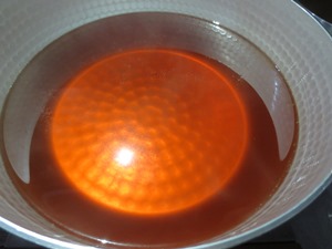 そのうち卵白が凝固することで濁りのある汁が、ひとつにまとめ、澄んだ美しい汁にしていく、