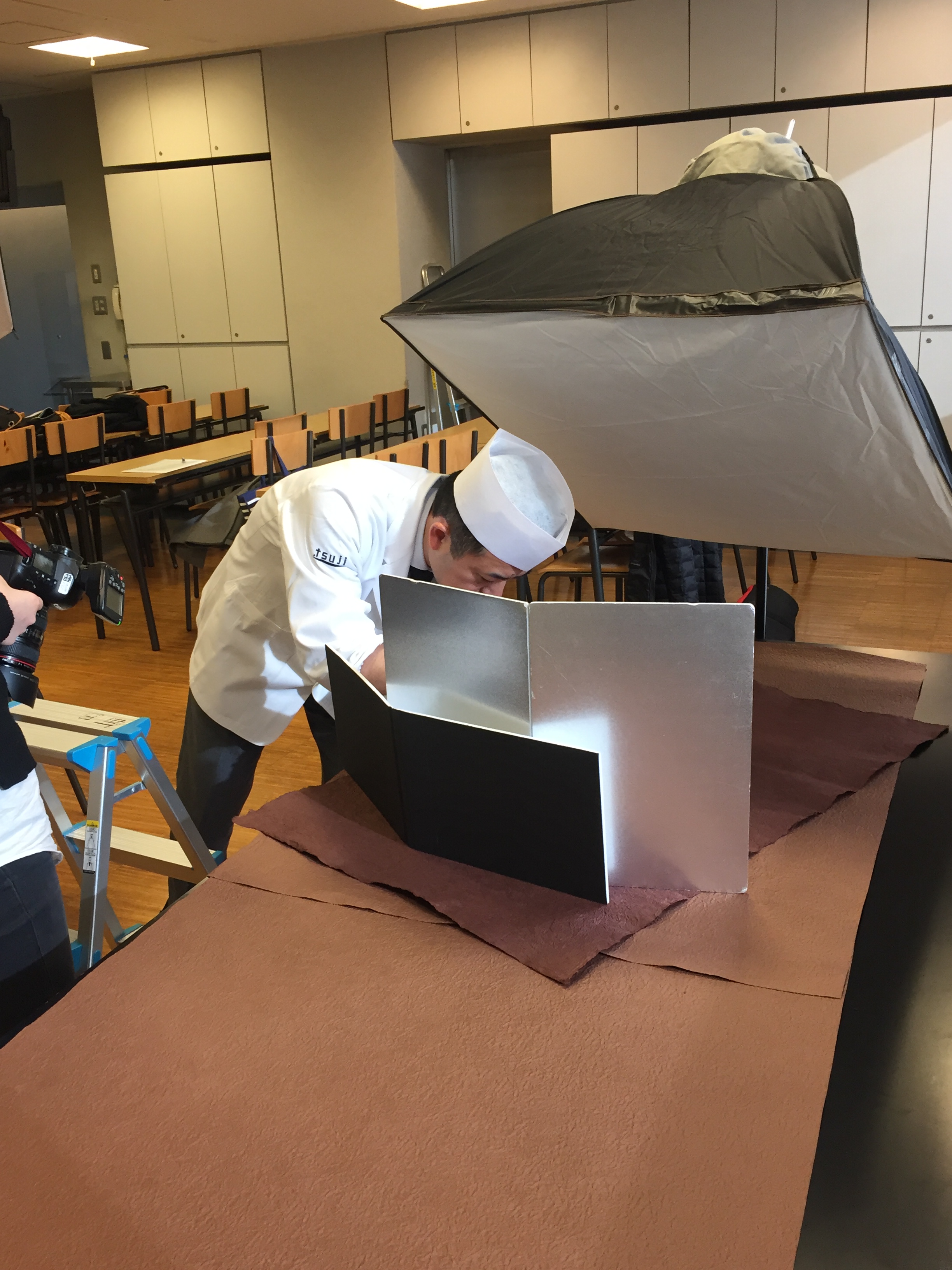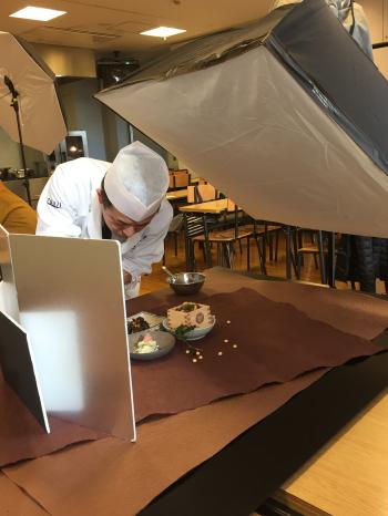 岡田先生はカメラマンさんと相談しながら盛り付けて行きます。