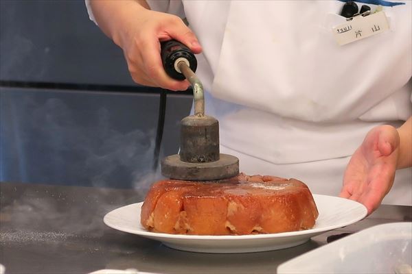 片山先生は、信州の伝統野菜「羽淵キウリ」と、今回の主人公であるリンゴを生かした3品を。羽淵キウリのトム・ヤム・クン風は、「思いもつかん料理や!」と驚きの声が。鴨胸肉のポワレには、りんごとカルヴァドスの深みあるソースを添えて。「フランス料理では、鴨とリンゴはとてもクラシックな組み合わせ」と先生。