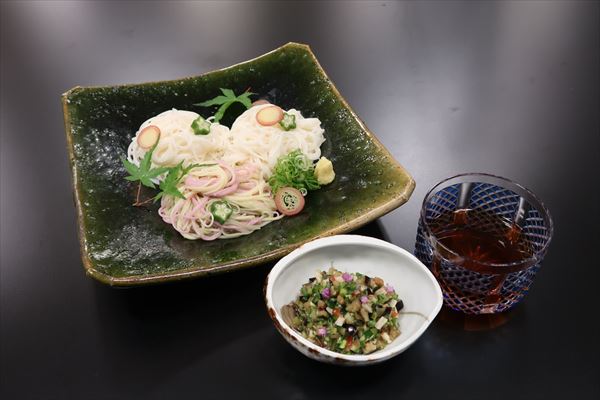 麺は、そうめんのフシの部分(そうめんを竿にかけて干すときの、折れ曲がった部分)を使用しました。