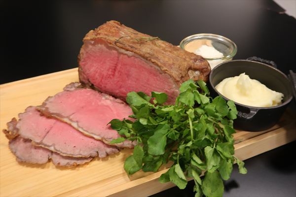 ローストビーフ、じゃがいものピュレ、ソース・レフォール(西洋わさび入りソース)という王道のセット。