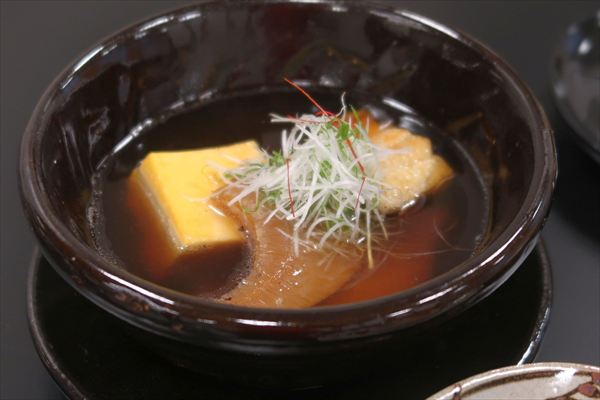2品目は、黄身ゴマ豆腐とフカヒレが入ったコクのある小鍋仕立て。肌寒くなってきたので、おだしの味が染みる。