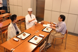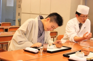 あわてて、 わさびを擦りおろす助手の先生(汗)