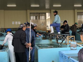 島に到着後、まずは魚のセリを見学するため、漁協へ。