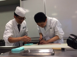 「さっき、吉坊さんが骨切りした箇所を焼いています。」と山下先生。