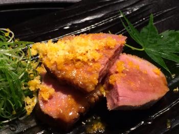 2品目は、「合鴨のみかんの燻製」(別名:みかんを生む鳥)