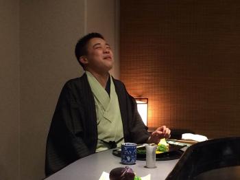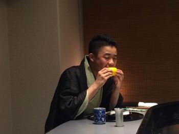 取材の前に、後輩に稽古を付けてきたという吉坊さん、