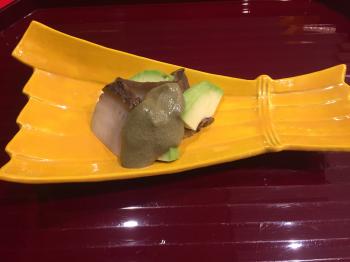 中村先生「アワビの肝のソースで、マヨネーズが入りやや洋風です。」