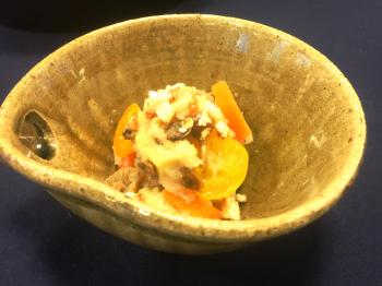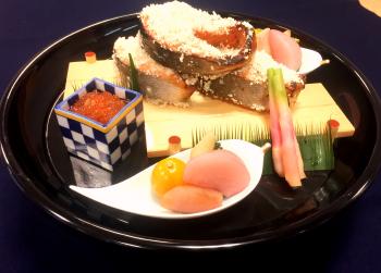 さて、3品目。「鱒の膳所焼き 紅梅蕪」。