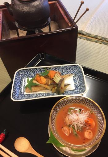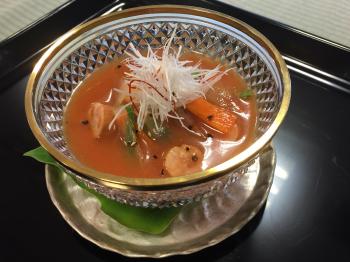 赤い色のせいか、洋風な感じがしますね。一番出汁で割って、とろみをだしています。