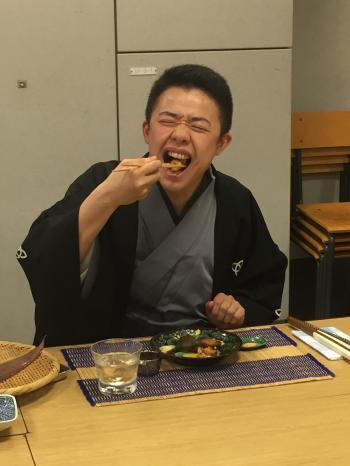 あえて、嫌そうに食べる吉坊さん。