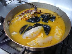 そして魚介類の身の部分を加えて火が通れば完成です。