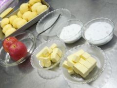 材料としては、直径21cmの型、1台分でりんごを10個も使います。