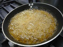 これを砂糖で作るカラメルに投入して、煮詰めていきます。