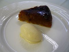 一人前にカットしてバニラのアイスクリームを添えてできあがりです。