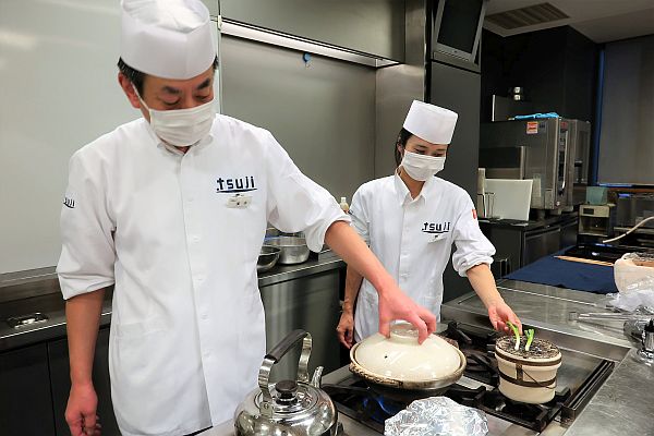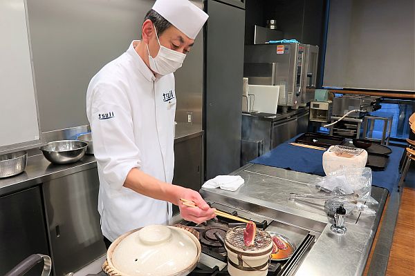 今回の料理は「鴨雑炊」。鴨だしで煮るうまみたっぷりの一品です。担当は、日本料理の濱本良司先生でした。