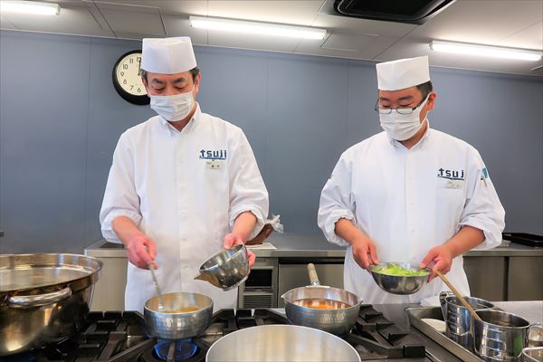 今回の調理担当は、2か月ぶりに日本料理の濱本良司先生(辻調理師専門学校)の登場です。助手は、小川雅史先生(辻調理師専門学校)が務めました。
