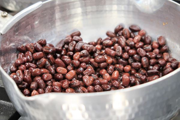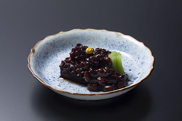 小豆は、基本的に別の材料と一緒に煮る以外では使いにくい、というのは小川先生の談。とはいえ、伝統食に欠かせない豆類ですし、料理屋でも取り入れたい。たこの味と小豆の味を互いに染み込ませつつ。小豆の色と粒の形もいかしつつ。