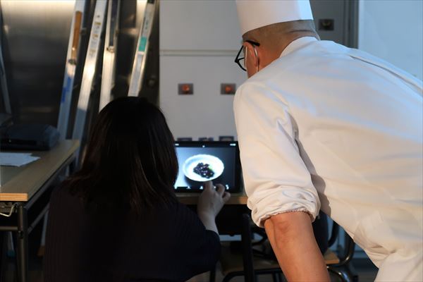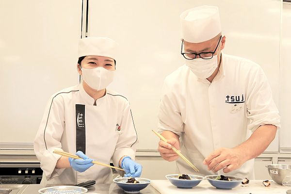 料理担当は、日本料理の小川健先生(辻調理師専門学校)です。助手は、TA(ティーチングアシスタント)の塩崎亜純さんが務めてくれました。