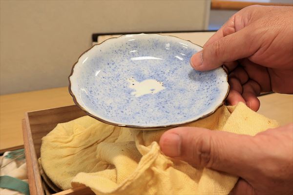 なんと明時代の景徳鎮! 徳川家所有物だったことを証明する鑑定書もついていました。改めて器にも注目して、料理写真を見てくださるとうれしいです笑