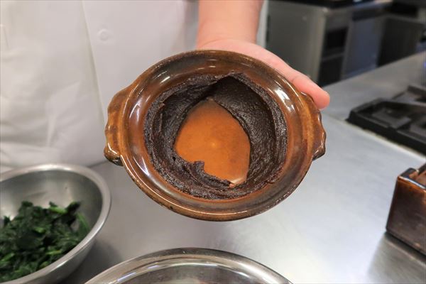 こんな感じで、鍋の内側に味噌を塗りつけて