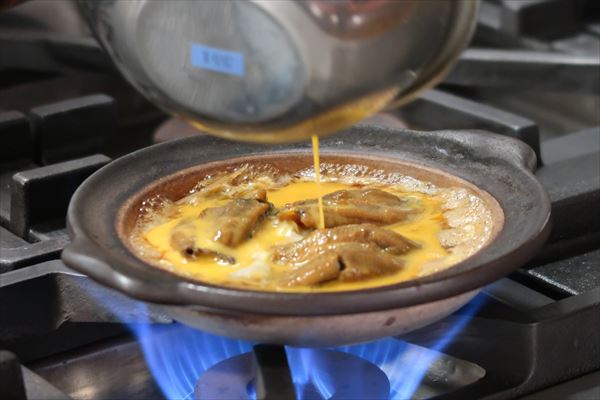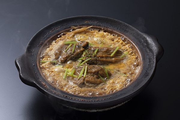 ドジョウとごぼうを甘辛いだしで煮て、ふんわり玉子でとじた小鍋仕立て。