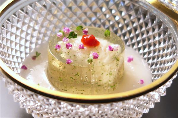 やわらかい牡丹鱧を閉じ込めたキラキラの煮こごり。