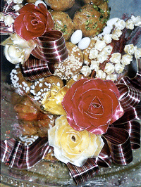 | 第一話の「天使の羽」以来の豪華で派手なテーマケーキでした。TVに映ったのはもちろん1台ですが、ハプニングに備えて予備を含めて5台作成しました。手間のかかるお菓子なので、小野さんが「ちょっと待っていて」というくらいでは、いくらエイジくんが協力していたとはいえ、ほんとうは絶対完成しません。シューの積み上げやら、あの華やかな飴細工やらを考えると、3時間ほどはお待ちいただきたいところ。 ちなみに、今回のエイジの作業は、茜さんが来ていた時も小野さんが「ちょっとでかけてくるから」といなくなるシーンも、ずっとシューだったことに気がつきましたか?以前はシュー生地を作るのに「柔らかすぎ、卵の入れすぎ」と小野に言われていたエイジくんも、着々と技術を上げて徐々にシューを任されつつあるという設定にして、最後のクロカンブッシュの作成シーンまで繋げていきました。 |