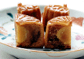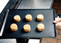 | 10.月餅をオーブンプレートに並べて、表面に霧を吹いて、200℃のオーブンで焼く。 | 11.表面が色づき始めれば艶出しを薄く塗り、更に4〜5分間焼く。 | 12.出来上がり断面。 |