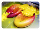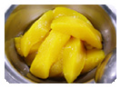 (6)粗い目に刻んだマンゴーのシロップ煮を加える。