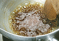 .煮詰めていくと色がついてくる。(濃くすると苦味が強くなる)