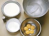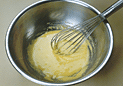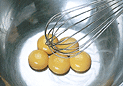 .ボールに卵黄を割り入れ、ホイッパーでほぐす。