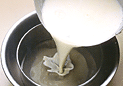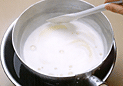 火から下ろし、冷水にあてて混ぜながら熱を取る。