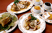 | 血の匂いに満ちた甘美な食卓 兎の屠殺からはじまる、兎をメインにしたこの父と娘の食卓、その豪華さは、「この上ない健啖ぶり」という表現でさえまだ控えめすぎるほどの量がある。平均的に日本人よりボリュームのある皿を平らげるフランス人でも、コースで食べるならば兎1羽は4人分とされるが、2人で1羽を食べてしまう。さらに鳩のローストなど盛りだくさんな料理は、レストランでのように1品ずつ供されるのではなく、まさに食卓の足がきしむほど、いちどきに並べられているのだろう。 ![]() |