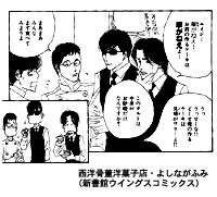| ●『西洋骨董洋菓子店』ドラマ化まで 印象に残ってるテレビドラマはありますか? よしなが「岸辺のアルバム。ずいぶん昔のドラマですが・・・。。ラフカディオ・ハーンの日本の面影も。小さい頃からドラマが好きで。いまでも新しいドラマは初回を大体チェックして、好きなものを選んで見ています。最近ではカバチタレがよかったですね」 ドラマ化が決まるまでのことを教えてください。 よしなが「編集さん(新書館の担当の方)のところにまず演出の本広さんからお話が来て、私としては本広さんにマンガを読んでいただけただけでもありがたくって。で『企画が倒れたらまわりに自慢しよう』なんて考えてたんです。でも通って、しかも、月9。もう、・・・・・・・。言葉が出ませんでした。『西洋骨董洋菓子店』は恋愛ものじゃないのに、フジテレビはなんて冒険をするんだろう?両親に話して3人で『うそみたいだね』って」 それから、どうされましたか? よしなが「プロデューサーの高井一郎さんとお会いして、いろいろお話をうかがって、こちらは『原作どおりでなくても全く構いません』『ただ連載中なのでラストだけはわたしが考えているものとはちがうものにしてください』という条件だけ出させていただいて。あとは原作者と言うよりドラマファンとして楽しみにしていたんです」 ●『西洋骨董洋菓子店』マンガとドラマの気になる関係 原作は現在と過去の時間軸が重なりあったりして独特のテンポがつくられていますが? よしなが「そうですね。基本的にマンガの主人公はオーナーの橘ですから。ただ、ドラマは時間軸をいじりすぎると見ていてすごく分かりづらいですよね。それにドラマでは主人公はエイジですから、そのあたりは純粋に見させて、楽しませてもらっていこうと」 テレビドラマではワープロ文字で書かれた<謎>が出て来ますが? よしなが「あの謎はわたしにも、わからない(笑)。でも、ワープロで、カタカタと文字が打たれてという演出方法は『なるほど、勉強になるなぁ』って見てるんですよ。不特定多数の人に見ていただくための演出には、さすがプロだなぁと」 その他、気になっているところとか、ありますか? よしなが「椎名桔平さんが、あまりにも橘そのものなので、もしかしたらわたしは最初から椎名さんをモデルに書いていたんじゃないかと錯覚してしまいそうで。ドラマのなかでもいかにも橘がしそうな仕種を椎名さんがなさると、ドキッとしますね。滝沢さんのエイジと、藤木さんの小野はマンガよりずっとさわやかで素敵です。いやホントにかっこいい・・・。阿部さんを含め、生身の美しい男性が同じ画面の中に4人並ぶというのは、何だか奇跡のようで呆然とします。ホント思ってもみなかった幸福な経験ですね」 3人のキャラクターのなかで、よしながさんの好みは、どなたですか? よしなが「オヤジ好きなので、橘です」 ●『西洋骨董洋菓子店』のケーキはこうして生まれた よしながさんの思い出のお菓子は? よしなが「母がパウンド型でシフォンケーキを焼いてくれたんです。レシピも母が工夫してくれて。それで、当時、生クリームが苦手だったわたしのため・・・かどうかはわかりませんが、砂糖でコーティングしてくれて。このレシピは『こどもの体温』というコミックスで使っています」 作品にはそういったご自分の経験を取り入れることが多いですか? よしなが「そのままではないですが、ありますね。」 生クリームは苦手だったと、先程おっしゃってましたが? よしなが「小さいころは。いまでも、しょっぱい系か甘いもの系かと言われれば、しょっぱい系。というかちょっと前まではそうでした。『西洋骨董洋菓子店』を描くために、あちこちで買ったケーキを食べているうちに、甘いものにめざめた!と言うか、まわりの人がおいしそうに食べているのに、自分だけ感じられないのはくやしい!損してる!みたいに感じまして。根が食いしん坊なので。今ではドラマでケースのなかのケーキがちょっと映ったりすると『あぁ、あれ、おいしそう』って、アシスタントさんと言い合ってます。アシスタントさんの中にはケーキを描きながらよだれたらしてる人もいますもん(笑)」 好きなケーキはどんなタイプですか? よしなが「タルトのようなガシッとしたものにキュンとしてしまいます。きれいな焼き込みの色をしてると、もう・・・(笑)。ドラマに出て来たアールグレイ・インペリアルもおいしそうでした。生クリームいっぱいのふわっとしたものより、茶系のしっかり焼かれたものの方がいいですね。デコレーションでもシンプルなものの方が好きですね」 ●3度の食事よりもマンガ好き! 他の作品もドラマ化してもらえるとしたら、どれがいいですか? よしなが「あまりない・・・、しにくいんじゃないですかねぇ。『こどもの体温』なら映像化できるかなと思いますが」 理想像とされているマンガ家さんは? よしなが「浦沢直樹さんです。あれだけ