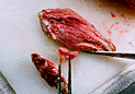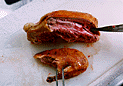 鴨を切り分けてもも肉に火を通す