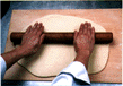 1.パイケースを作る パイ生地を作る要領で小麦粉、バター、塩、水を練り合わせ、30分休ませる。この生地を2cm厚さにのばす。 |