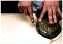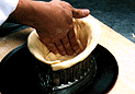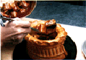 | 4.蓋を取り除いて小麦粉を捨て、パイケースを型からはずす。 |