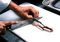 | 1.うなぎは皮をはいでヒレを取り除き、頭を落として3cm長さの筒切りにする。 |