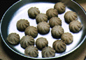 3.型の底と側面に生地を貼りつけ、小麦粉(分量外)を一杯まで詰め、同じ生地で蓋をして、180℃のオーヴンで40分焼く。 |