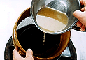 3.さざえを火にかけ、だしがひと煮立ちしたら、しょうがの絞り汁を少量加える。
